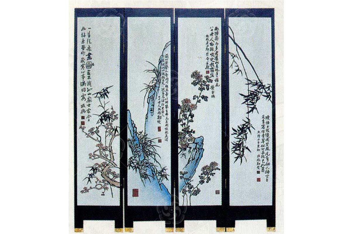 刻漆屏風(fēng)屬于刻漆工藝的一種,該工藝強(qiáng)調(diào)橫平豎直,充分體現(xiàn)刻漆工藝的難度,色彩對比強(qiáng)烈,又不失和諧。
